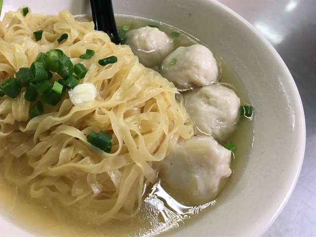 A standard bowl of fish ball noodles or squid ball noodles comes with about six to eight balls, though some customers frequent more. The balls are usually served in a light broth, but can also come dry with a side of Thai chili sauce for dipping. Watching the fish balls or squid balls get ladled into the broth, their perfect spheres seem to float and bob in the soup as if ready to pop with seafood sweetness. It’s easy to see why these homemade morsels are worth lining up for.