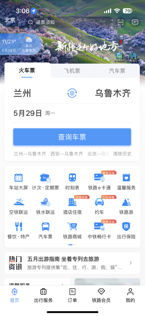 A vital part of traveling in China involves leveraging the country’s extensive high-speed rail network. To book your train tickets in advance and bypass agent fees charged by third-party platforms, the official China railway app “12306” comes to the rescue. With English and Chinese language support, it empowers travelers to purchase train tickets conveniently. And once your booking is done, all you need is your passport – no ticket collection queues at the booth or at the station entry. Simply scan your passport and board the train.