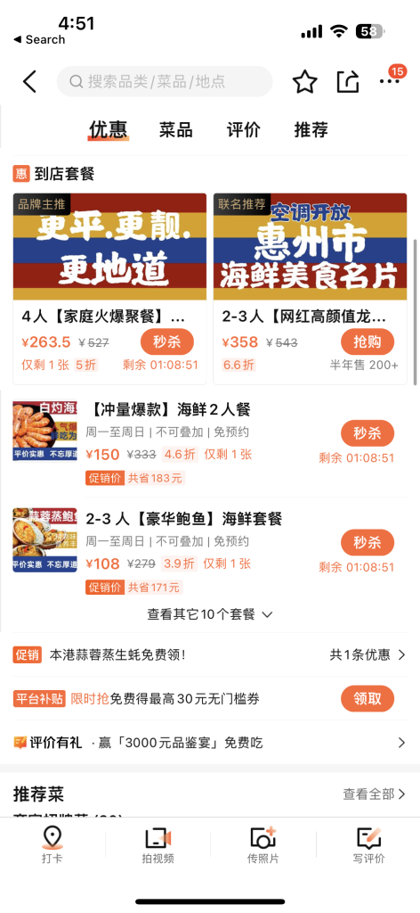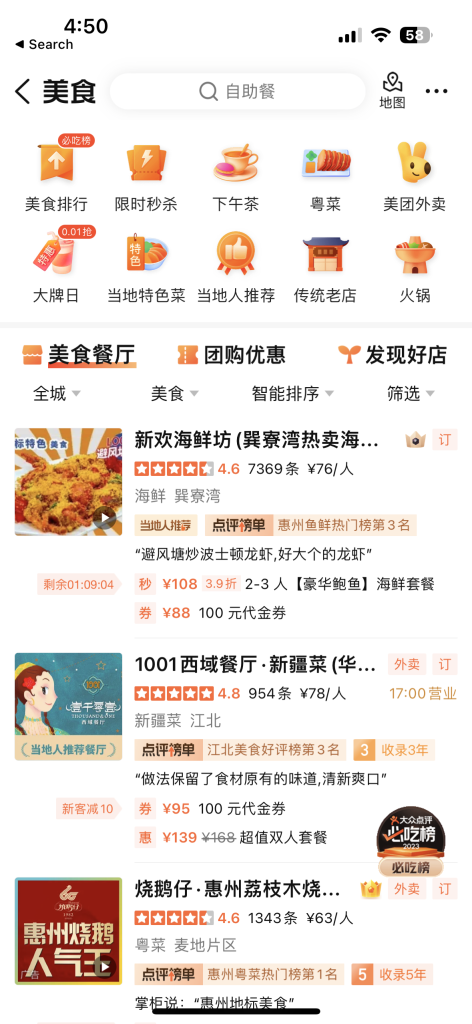 1. 大众点评 – A comprehensive platform for food, leisure, travel, and pre-purchase deals.