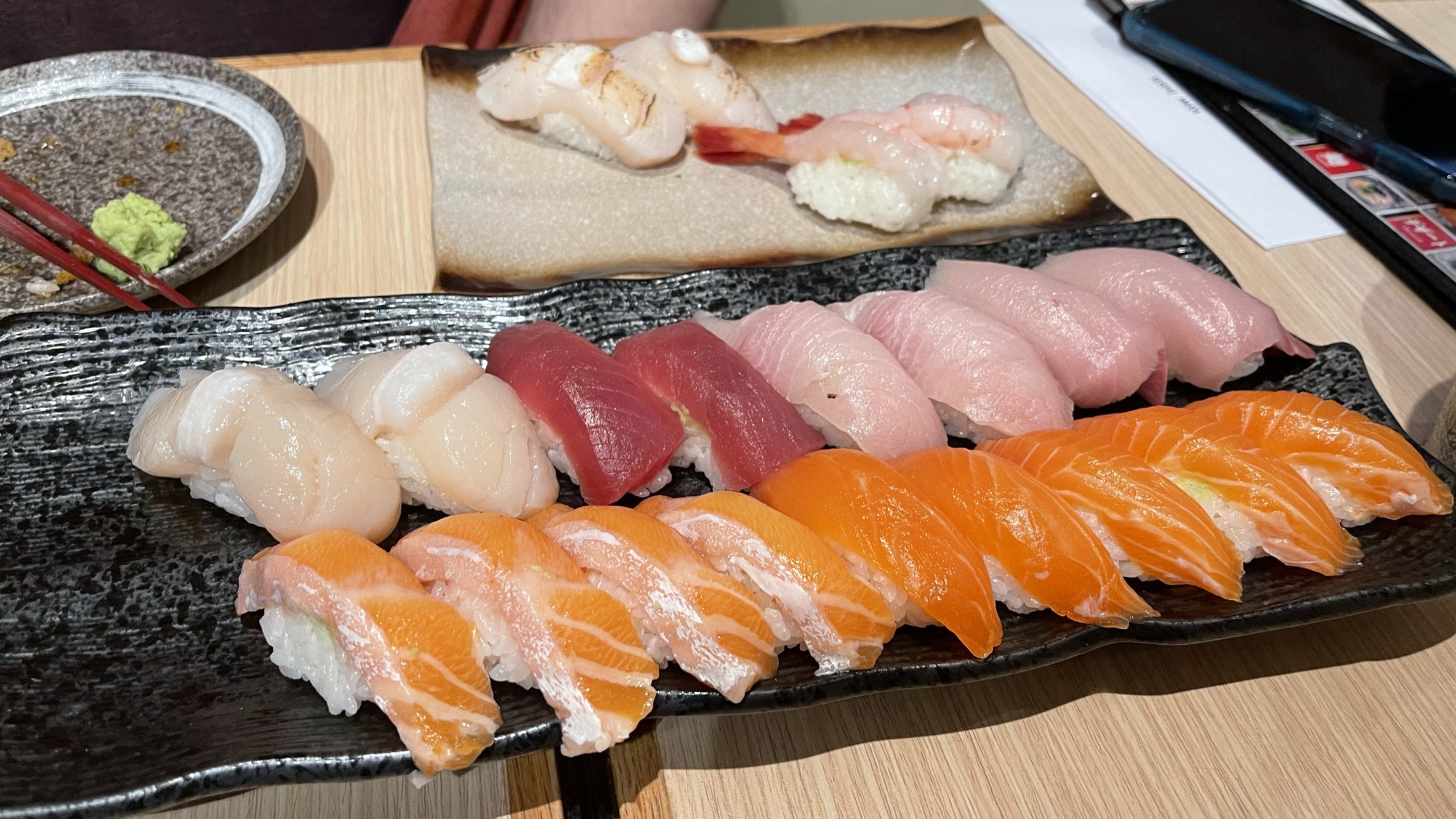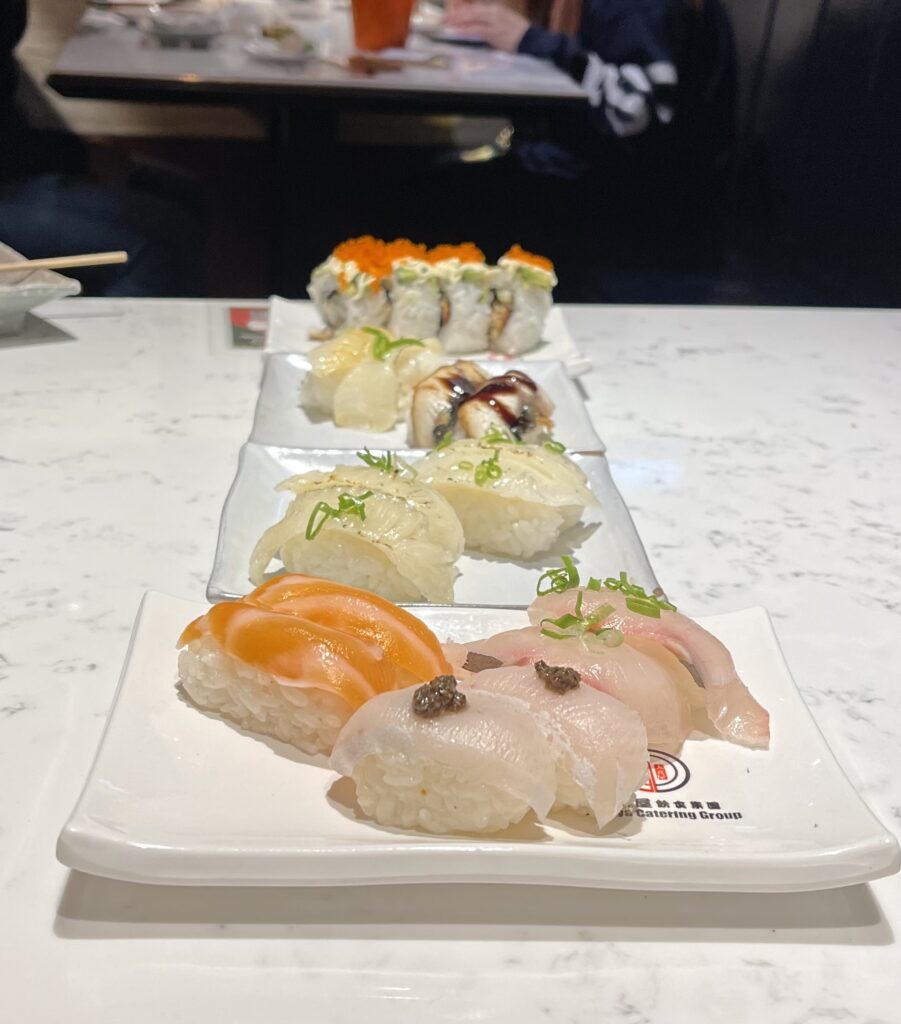 Overall, the quality of the sashimi can be best described as high-tier, depending on the fish and season. Besides sushi and sashimi, the all you can eat menu also includes delicious Japanese snacks like fried soft-shell crab, beef, hand rolls, scallops, foie-gras, salads, eel, teppanyaki grilled vegetables and meats. Of course, they also offer desserts to finish the meal with ice cream and mochi!